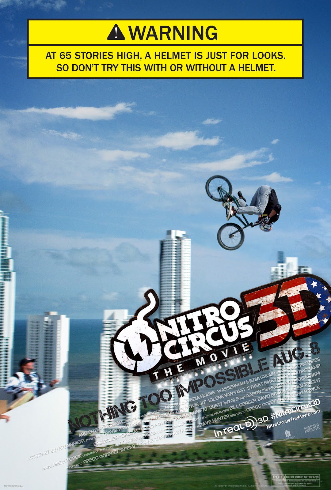 SYNOPSIS: For the sports adventure troupe known as Nitro Circus, no dream is too out-there, no idea is too high-risk and no never-before-seen stunt is too hilariously impossible-sounding to attempt. They laugh at gravity as they somersault across skyscrapers, merrily fly buses off cliffs, gleefully morph their bodies into human torpedoes, and generally aim to have more fearless fun than anyone else on the planet. And now, this summer, the action-athletes who never stop pushing the boundaries of what others say can and can’t be done head off on their wildest and most inspiring quest yet, in three dimensions.